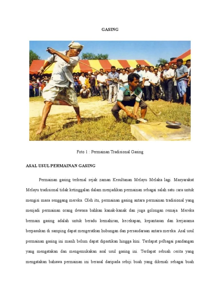 Permainan Tradisional Melayu Gasing - 15 Permainan Tradisional Yang Semakin Dilupakan Bonda Chanteq. Kaum etnik yang terlibat dalam permainan tradisional gasing ini ialah . Lebih gemar untuk bermain dengan gasing melayu dan cina, . Biasanya dimainkan selepas musim menuai. Biasanya dimainkan selepas musim menuai.